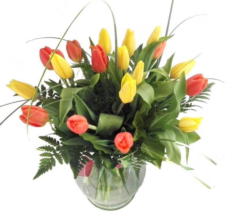 Asa cum sugereaza si numele, buchetul "Culori calde" este alcatuit din flori ce creeaza impresia unei atmosfere calde si confortabile. Este potrivit de trimis sotiei, mamei, iubitei, prietenilor sau bunicilor. Buchetul de flori mixt este format din 10 lalele galbene si 9 lalele portocalii. Vaza este doar cu titlu de prezentare si nu este inclusa in pretul produsului. Pentru a comanda vaza, adauga un cadou buchetului tau dedesubtul descrierii detaliate.